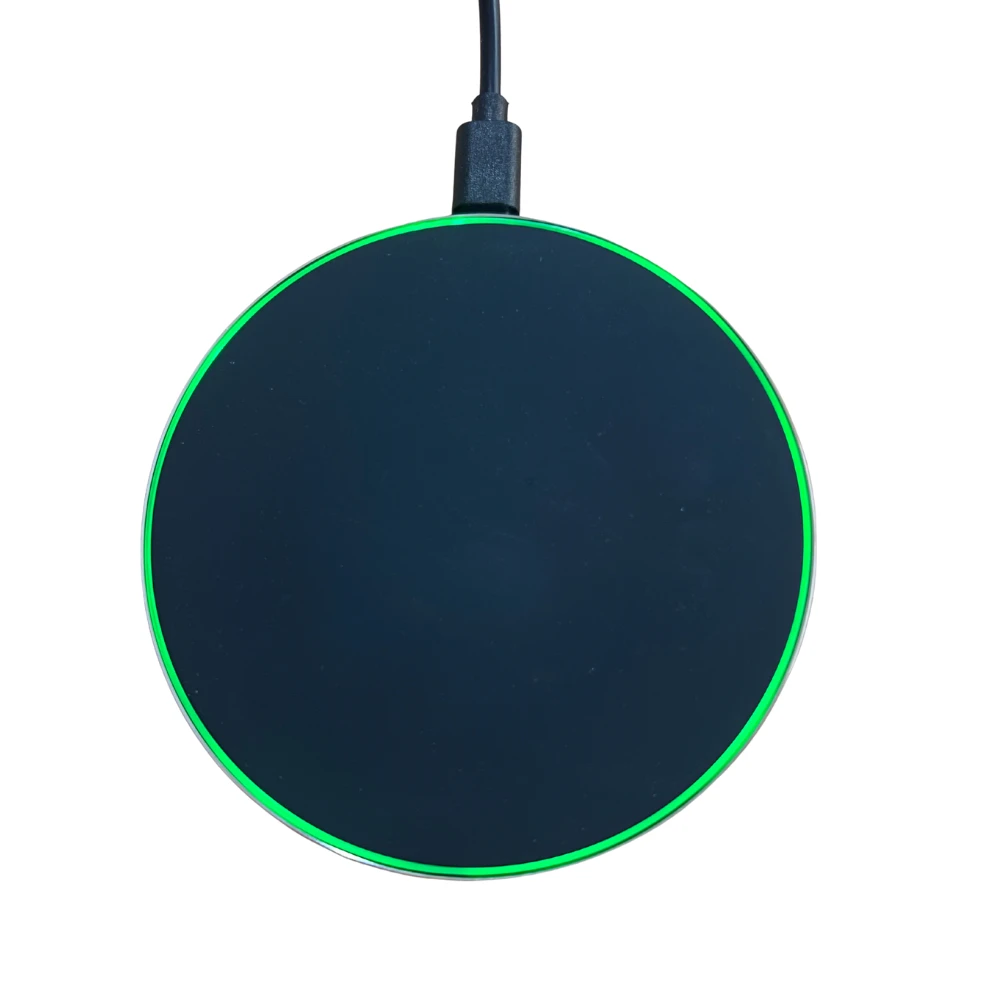 - Glas zeigt an, dass die LED leuchtet, wenn das kabellose Ladegerät in Betrieb ist. Das wärmebehandelte Glas macht es stark genug.
